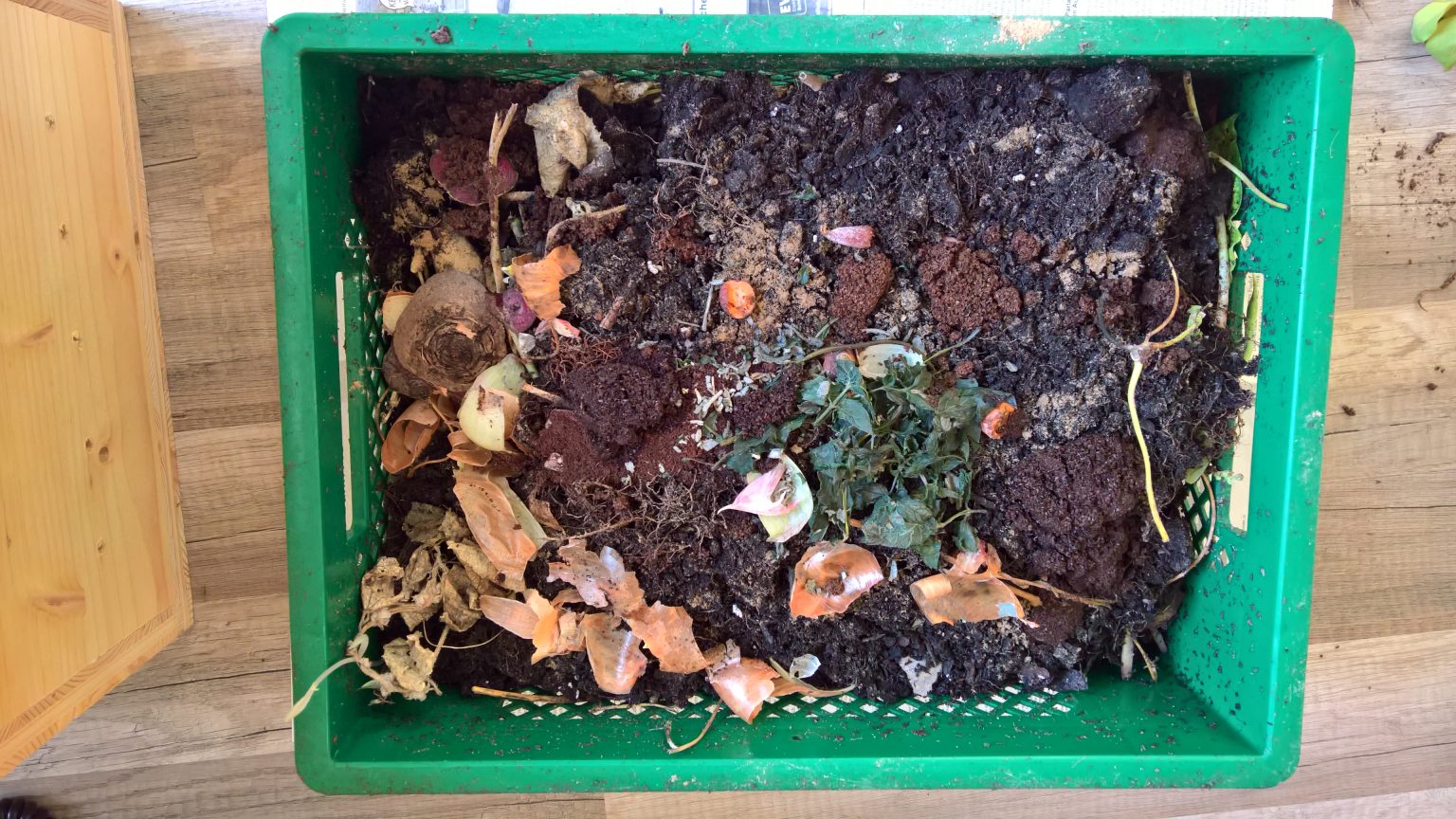 Wir bauen ein XXL-Wurmcafé für unser grünes Klassenzimmer. Hier kommt fast alles rein, was bisher im Biomüll gelandet ist: Kleingeschnittenes Grünzeug, Laub, Fruchtreste, Teebeutel, Schalen, Blätter, Eierschalen, Kaffeesatz und Gemüse. Das Projekt soll uns das Thema Bodenleben und Kompostierung näher bringen. Die Kompostwürmer erhalten wir von den BodenschätzeN und füttern diese mit Obst- und Gemüseabfällen vom Restaurant Kedem in unserem Haus. Win-Win für alle! Jeder kann ein kleines Wurmcafé für den Balkon zu Hause nachbauen. Meldet euch zum Workshop an!